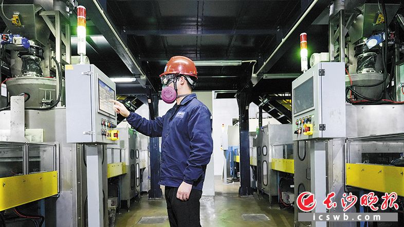 巴斯夫杉杉锂电池正极材料数字化车间里,全自动化生产运转有序,工人正点击操作屏查看数据。长沙晚报全媒体记者 邹麟 摄