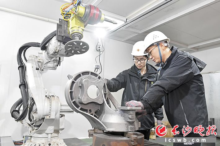 全宇工业通过将AI视觉、机器人技术与工业场景相结合,提升铸件毛坯打磨效率。长沙晚报全媒体记者 王志伟 摄