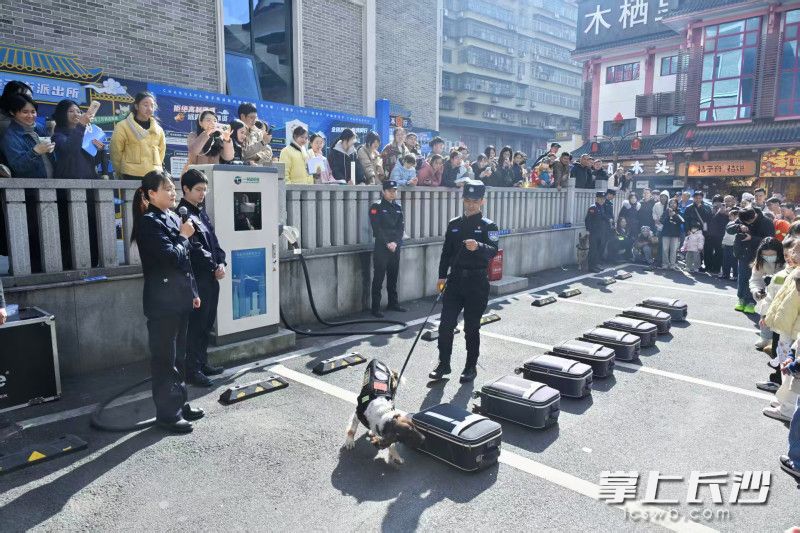 现场警犬搜排爆展示。均为长沙晚报全媒体记者 张洋子 通讯员 雷善平 摄