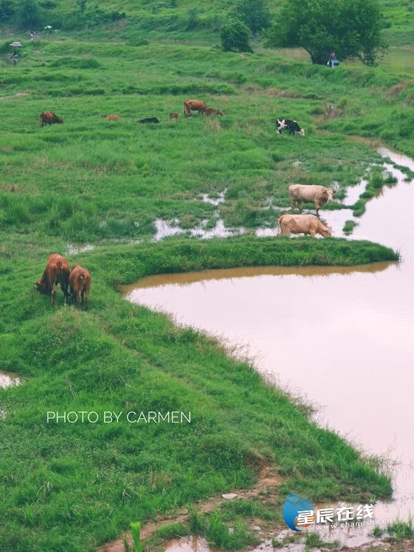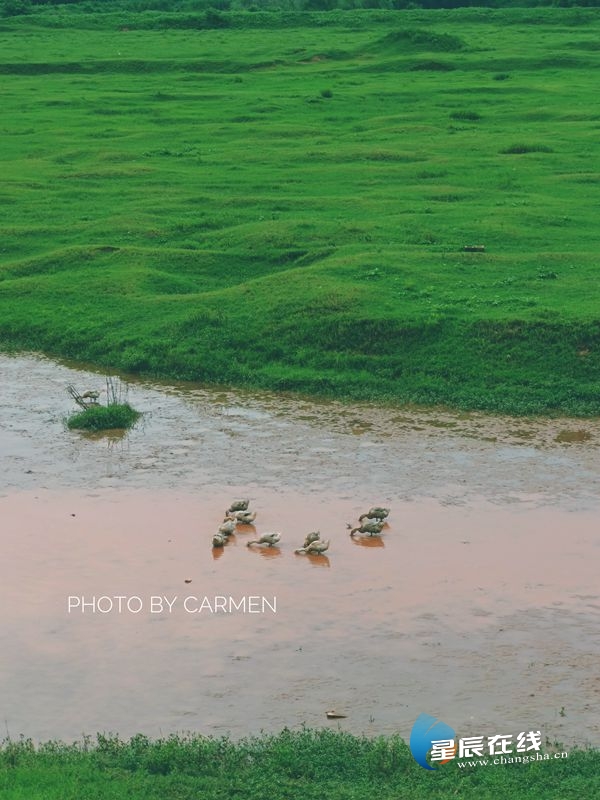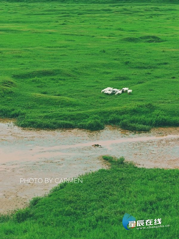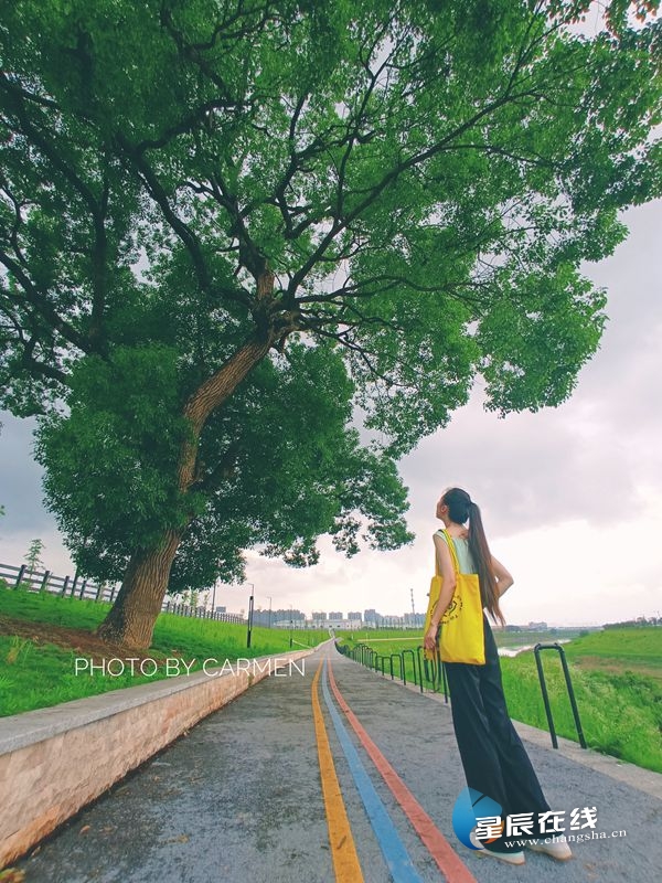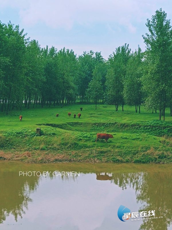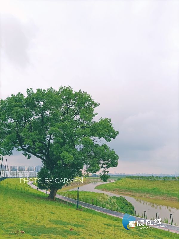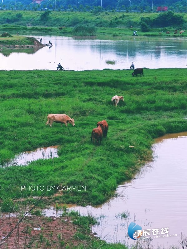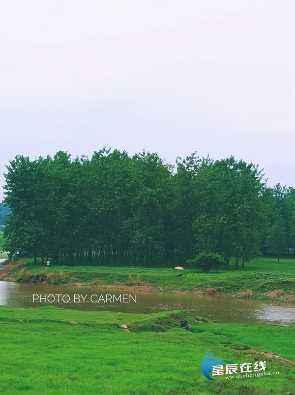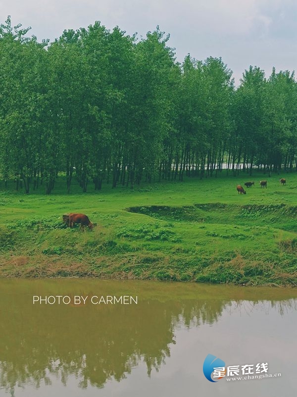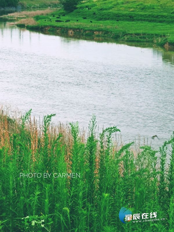 有人说这里是长沙的小内蒙,河对岸一片如同原始森林的岛上,有天苍苍,野茫茫,风吹草地见牛羊的景致;行于绿道上,看蜂飞,观蝶舞,听鸟鸣,人与自然其乐融融。
