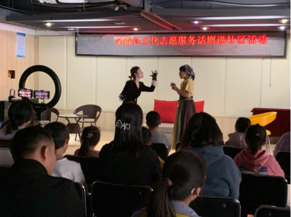 与雷锋同行,文化进万家。为丰富群众精神文化生活,3月5日下午,长沙市文艺志愿者协会创新性地将话剧这一艺术形式送到了天心区先锋街道南城社区中信文化广场,为辖区的居民群众带去经典话剧演出。此次话剧专场由天心区文旅体育局主办,天心区文化馆、长沙市文艺志愿者协会承办,长沙市群众艺术馆手把手青年话剧团出演。演出还通过“南城在线”党建直播间进行了直播,吸引了广大党员和群众观看。