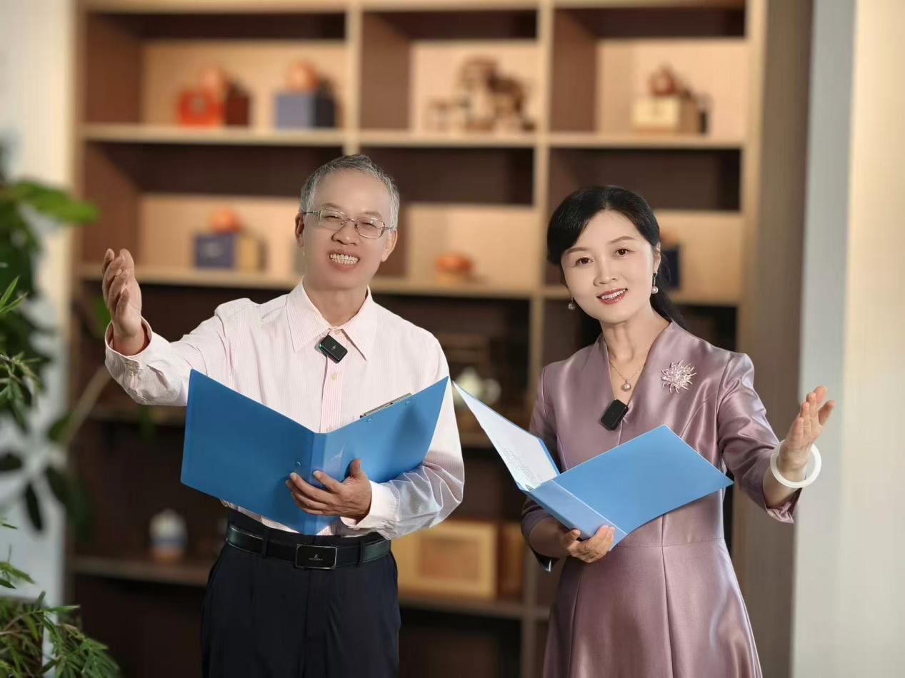 朗诵达人、潇湘诗会“诗歌义工”周青梅(右)、于安全(左)合诵