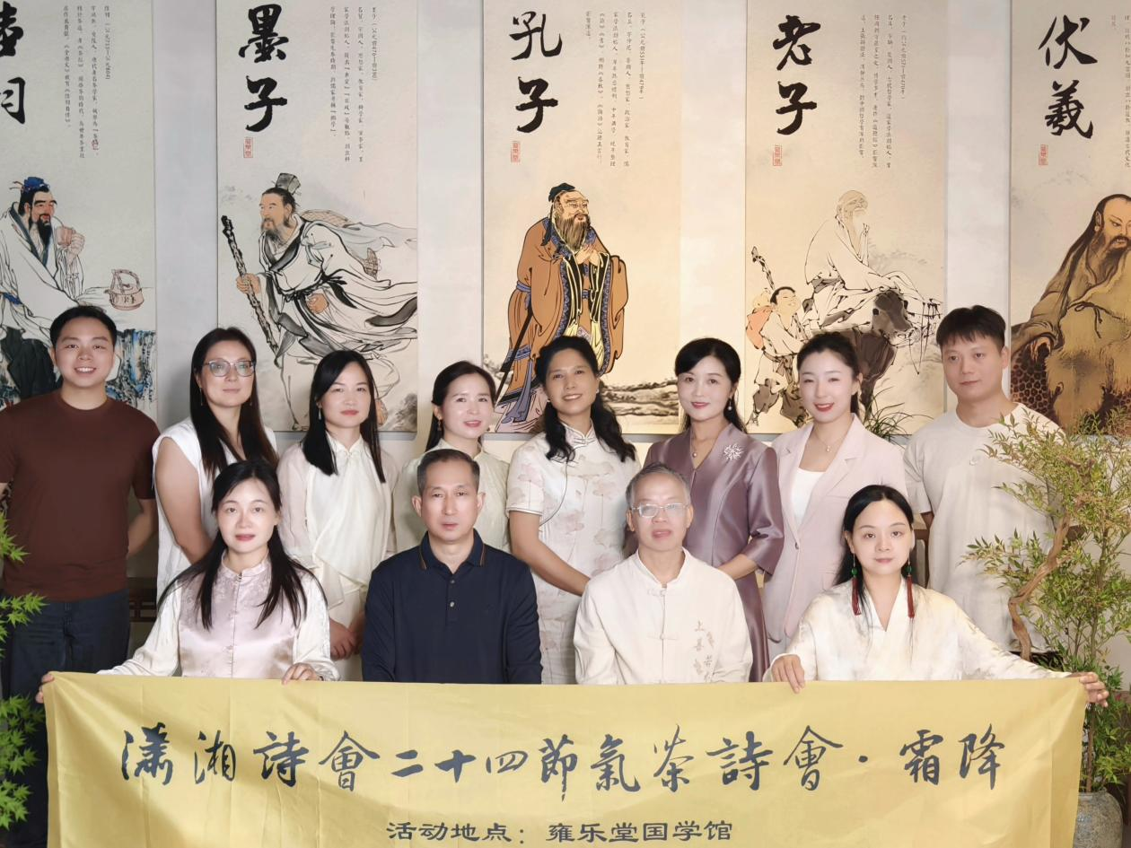本次活动在长沙雍乐堂古朴雅致的环境中徐徐展开,诗声、琴韵、茶香交织融合,不仅生动诠释了霜降节气的文化内涵,更展现了对传统的敬意、对生活的热爱以及对情谊的珍视。