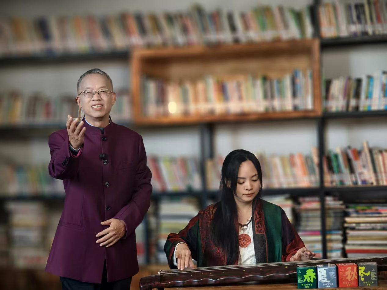 接着,于安全朗诵毛泽东磅礴之作《七律·长征》,“弦歆琴社”主理人、古琴演奏家梁英姿以一曲《关山月》相和。琴声苍茫悠远,诗声铿锵豪迈,革命者跨越千山万水的壮志与凛冬中的从容气度,在声与乐的对话中淋漓展现。