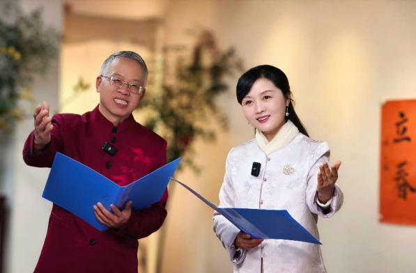 随后,周青梅与于安全联袂朗诵诗歌《你好,立春》,“春风送暖,万物初张。百草破土,点染新妆”,两位朗诵艺术家以饱满的情感与优美的语言,唤醒了现场观众对春天的向往与期待。