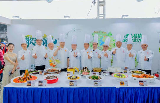 歌声悠扬,菌香相伴。在村歌大赛的现场,羊肚菌美食展示活动同样引人注目,成为另一道亮眼风景。活动现场,12位资深主厨齐聚一堂,以青山桥镇本土培育的优质羊肚菌为核心食材,搭配当地特色风物,分两轮精心烹制出12道创意菜品。中国烹饪师王宇逐一登台介绍,刘洪波的“青山毓秀”、周超的“日照洪霞”、刘衡的“田坪九宝”……每一道菜品都匠心独运,既锁住了羊肚菌的鲜香本味,又融入了青山桥的山水意境与人文情怀,让现场观众大饱眼福、食指大动。