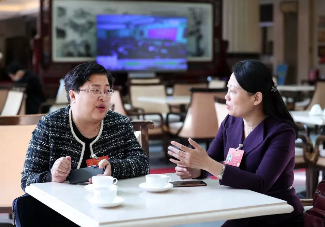 在陕西代表团驻地,记者看到,有代表在一起交流工作,有代表在接受记者采访。