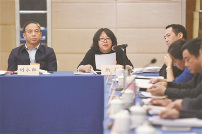 1月13日上午,颜玫委员(左二)在小组会议上就产业扶贫走可持续发展路线建言。湖南日报记者 傅聪 摄