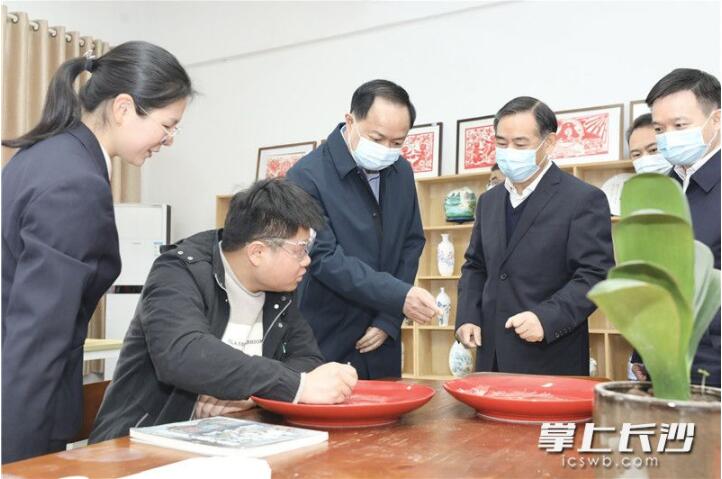 在长沙职业技术学院,郑建新走进特殊教育创新创业基地,了解学校建设情况。刘书勤 摄