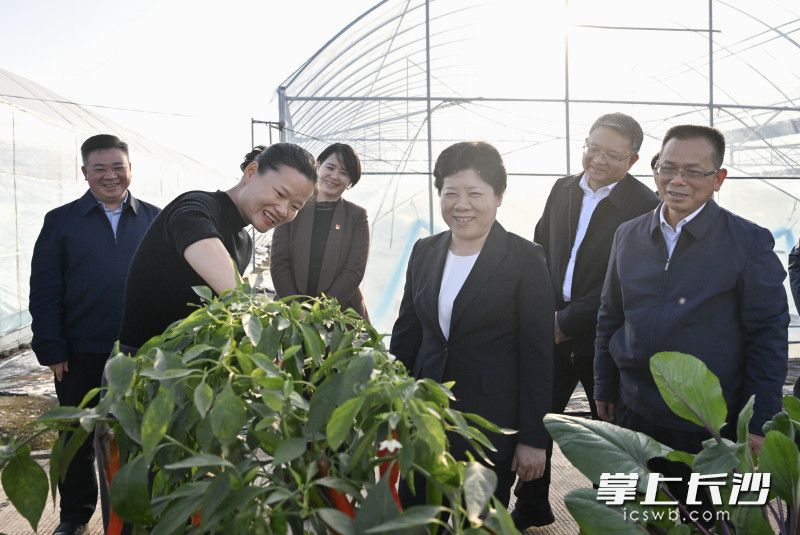 秋末冬初,融融暖阳下,层林尽染,田园斑斓,乡村如画。吴桂英实地调研乔口镇“七里湖畔·醉美荷虾”乡村振兴示范片、乌山街道湖南农美农业蔬菜基地和团山湖村“水美湘村”示范片,得知在基层党组织带领下,当地把小龙虾做出大文章,将辣椒苗培育成大产业,让传统村落焕发新活力,吴桂英勉励大家再接再厉,把“土特产”琢磨透、做精彩,深度挖掘乡村多元价值,推动农业“接二连三”,抓好农田水利建设和越冬作物播种管理,为明年春耕打好基础,坚决守住耕地保护红线和粮食安全底线。