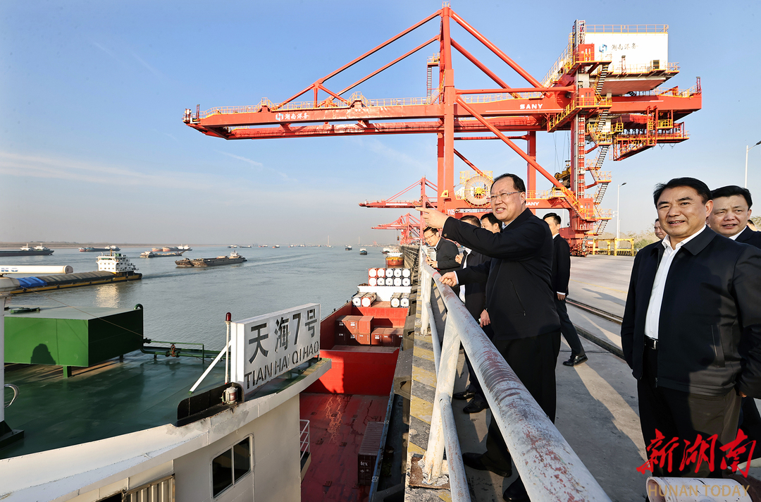 作为湖南唯一通江达海的港口,城陵矶港年吞吐能力达200万标箱,是长江八大天然良港之一。初冬的江面,货轮往来穿梭,一片繁忙景象。毛伟明一行来到码头作业现场,了解港口发展情况。他说,岳阳伴港而生、依港而兴。要做好流向、流量、流效文章,强化港口服务功能,完善港口体系建设,擦亮“城陵矶港”金色名片,让“黄金水道”释放更多“黄金效益”。