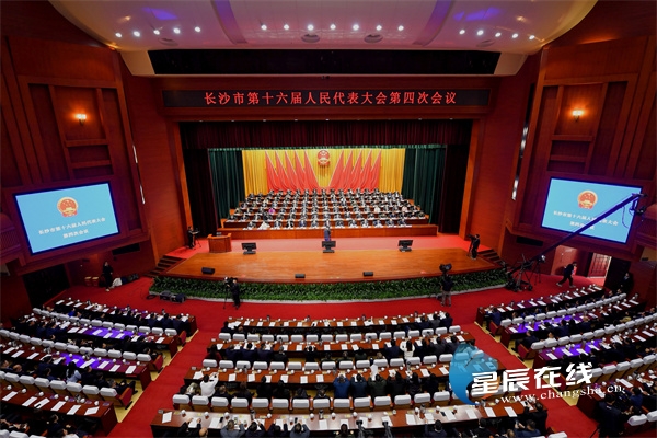 (1月13日下午,长沙市第十六届人民代表大会第四次会议胜利闭幕。图片由 星辰全媒体记者 丁木村 摄)