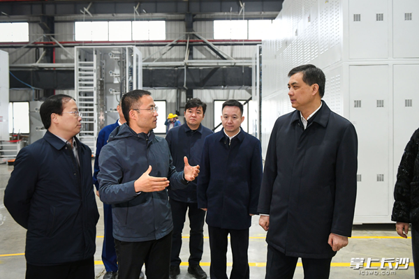 (在湖南红太阳光电科技有限公司,周海兵现场检查企业安全生产工作。 长沙晚报全媒体记者 郭雨滴 摄)