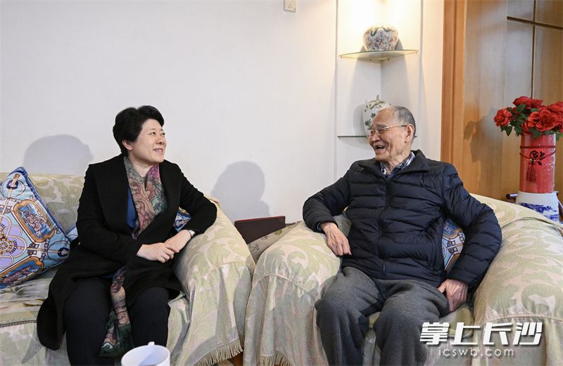 1月31日,省委常委、市委书记吴桂英看望慰问老同志臧宝山。均为长沙晚报全媒体记者 余劭劼 郭雨滴 摄影报道