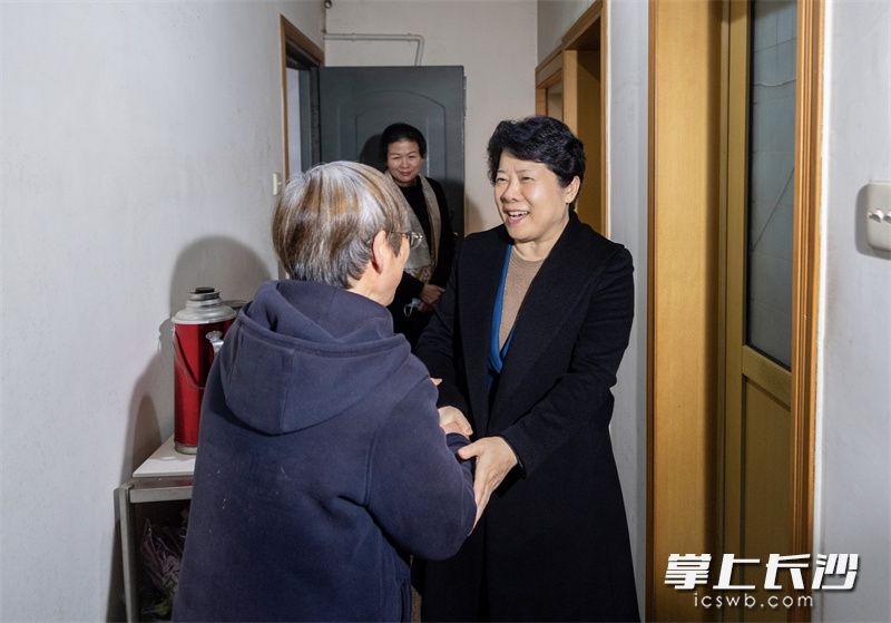 来到老同志臧宝山家中,吴桂英关切询问老人身体和生活情况,倾心交流、听取意见,感谢老同志长期以来对长沙改革发展稳定付出的辛劳、作出的贡献,祝愿老人春节快乐、生活幸福、健康长寿。她叮嘱随行有关部门负责同志用心用情做好服务保障工作,让广大老同志舒心生活,老有所乐、老有所为。