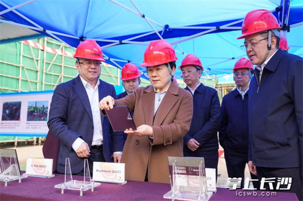 3月14日,省委常委、市委书记吴桂英调研湖南湘江新区经济社会发展情况,来到长沙普照8.5代及以下高精度掩模基板产业基地。
