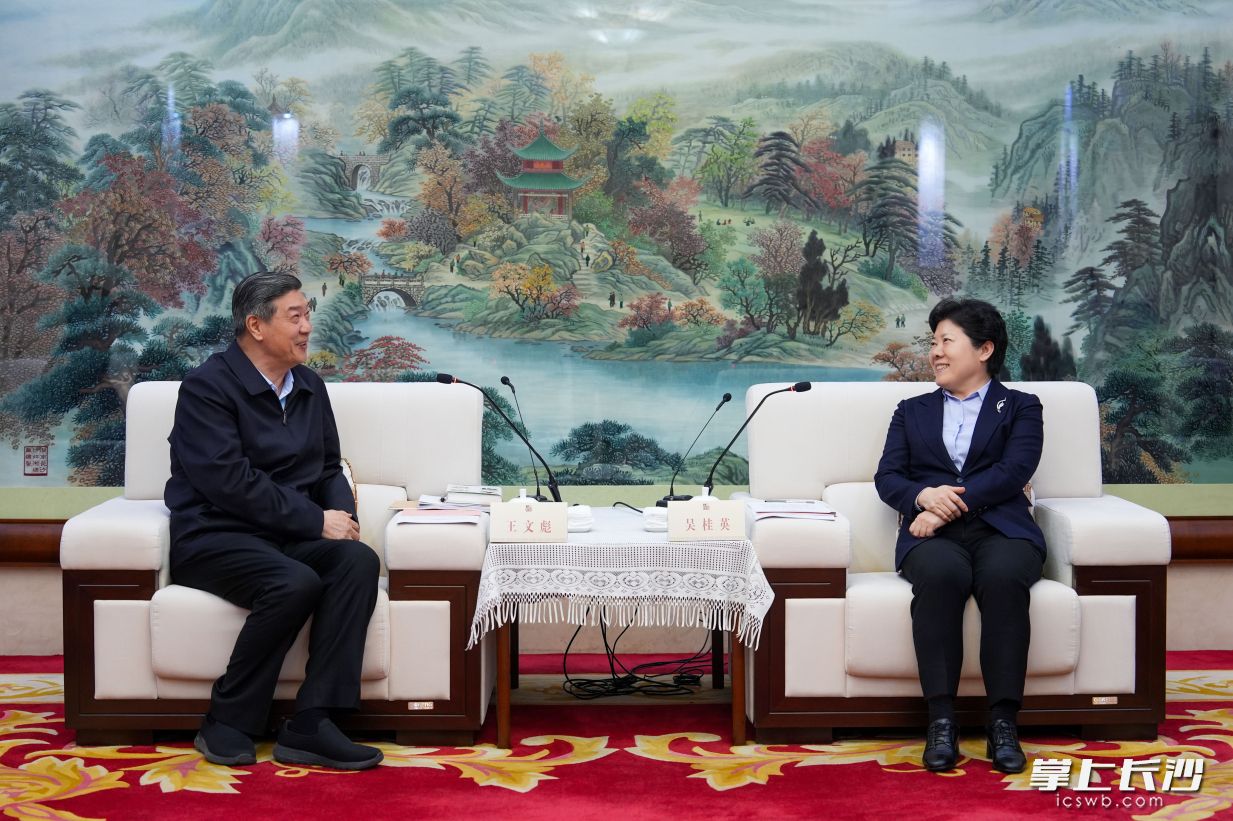 3月17日,省委常委、市委书记吴桂英会见亿利资源集团有限公司党委书记、董事长王文彪一行。 长沙晚报全媒体记者 郭雨滴 摄