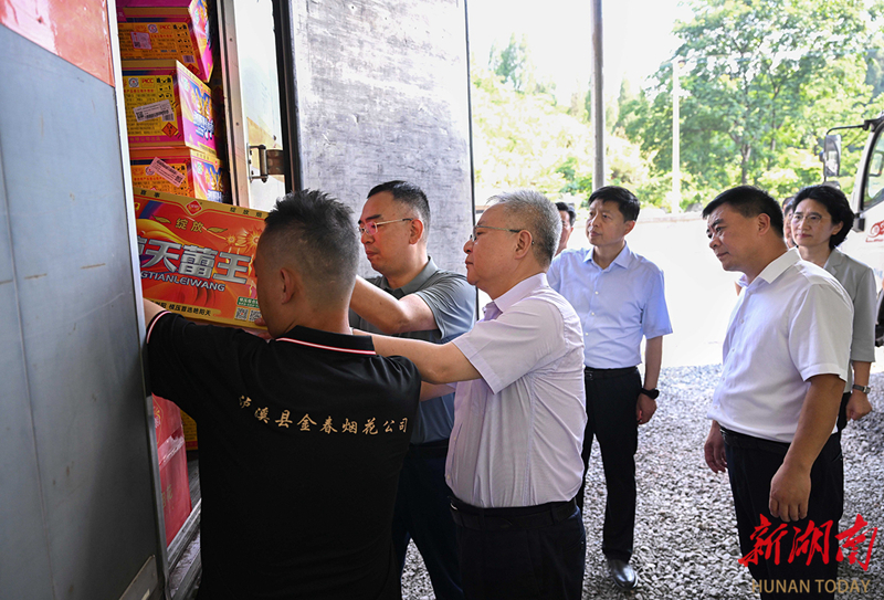 (7月8日,沈晓明在泸溪县金春烟花爆竹有限责任公司调研。)