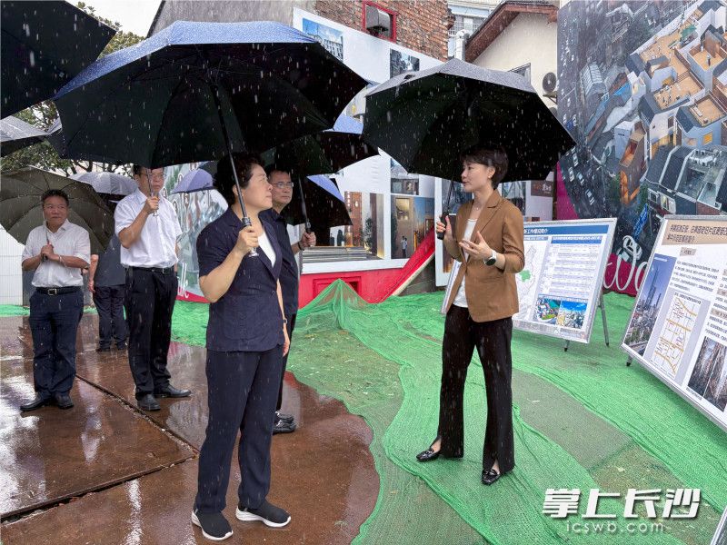 7月22日,省委常委、市委书记吴桂英调研城市更新和城中村改造工作,来到开福区潘家坪路排水管道及附属设施项目现场。