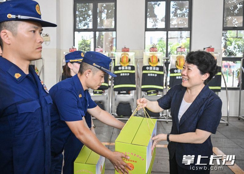 来到天心区消防救援大队大托铺消防救援站,吴桂英与消防救援人员一一握手,感谢他们始终坚守防火灭火、应急救援前线,时刻守护城市安宁。她说,当前暑期与汛期叠加,需高度警惕洪涝灾害、火灾溺水事故等风险。希望大家继续弘扬光荣传统,苦练专业本领,保持战斗状态,不断提升综合救援能力,全力守护人民群众生命财产安全。