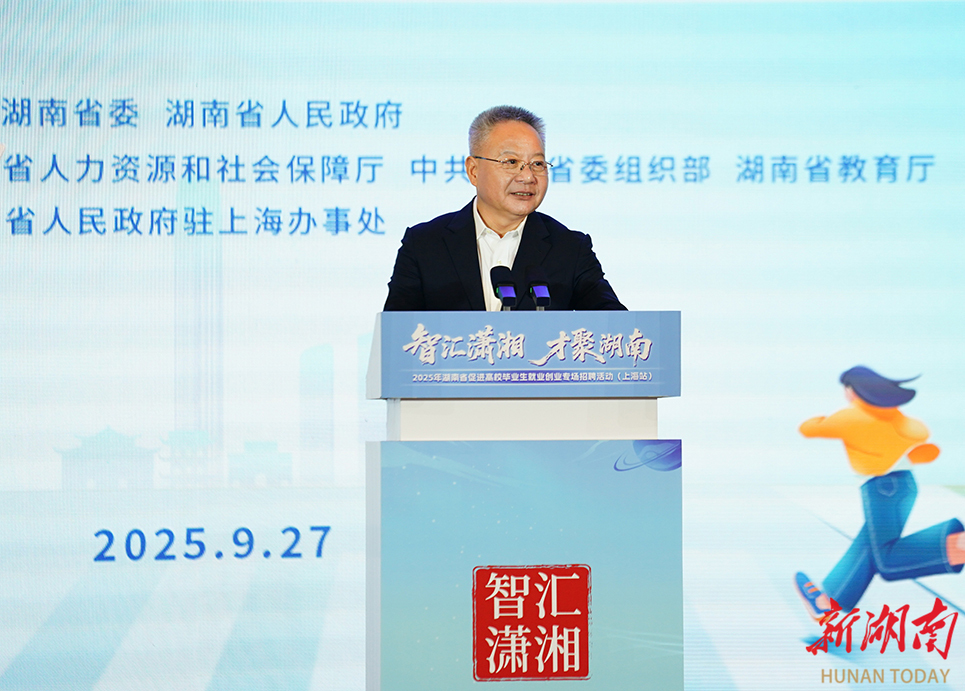 星辰在线9月27日讯 据湖南日报消息:27日,“智汇潇湘 才聚湖南”上海站专场推介大会暨省校合作签约仪式在上海展览中心举行。省委书记沈晓明出席并致辞,向大学生朋友发出邀请,欢迎大家走进湖南、了解湖南,到湖南来工作、来创业、来安家。