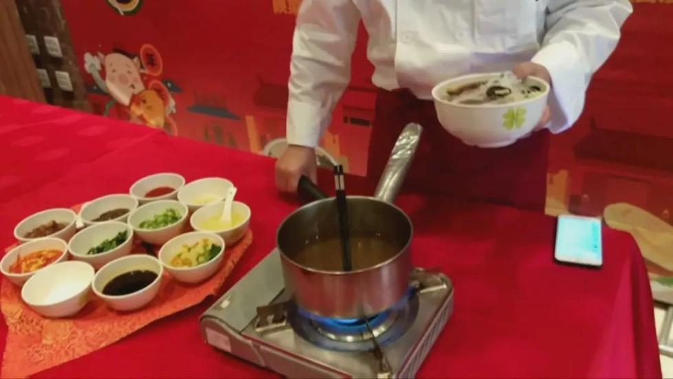 大厨现场展示了西安传统美食羊肉泡馍的制作方法,叫你吃得好、还吃得明白。