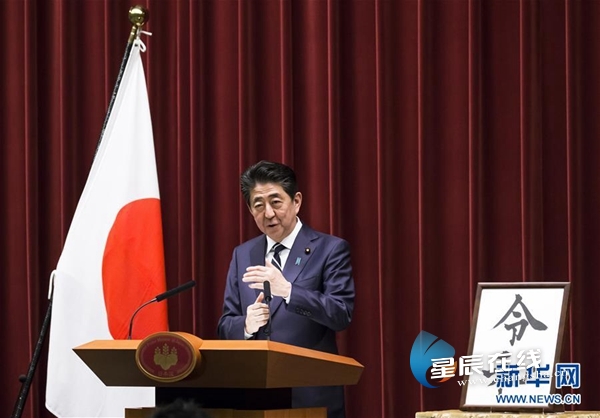 4月1日,在日本东京,日本首相安倍晋三在公布新年号为“令和”的新闻发布会上发言。新华社发