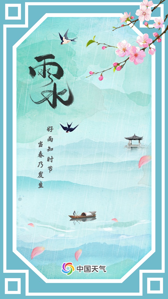 雨水时节,我国降雨明显增多,与立春相比全国平均降水量增加21%,降水量最多的是福建、上海、浙江、江西、安徽等地。常年雨水节气期间,我国南方大部的平均降水量都在10毫米以上,其中安徽南部、浙江、江西、湖南中部和东部、广东北部、福建大部等地平均降水量能超过50毫米。江汉、江淮北部、黄淮南部等地随着气温升高,降雨往往在和降雪的对峙中占据上风,春意初显雨渐多。