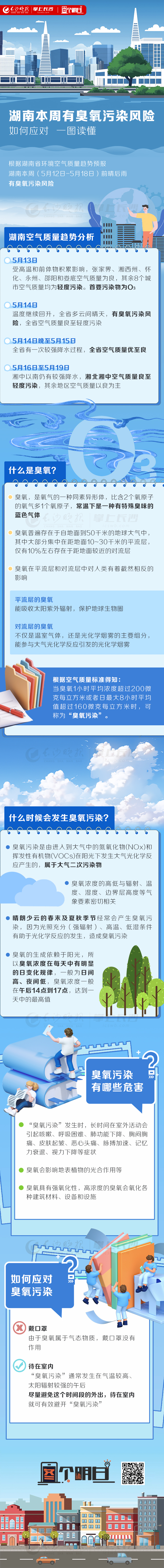 根据湖南省环境空气质量一周趋势预报,本周前晴后雨,有臭氧污染风险。什么是臭氧?什么时候会发生臭氧污染?如何应对臭氧污染?一图了解↓