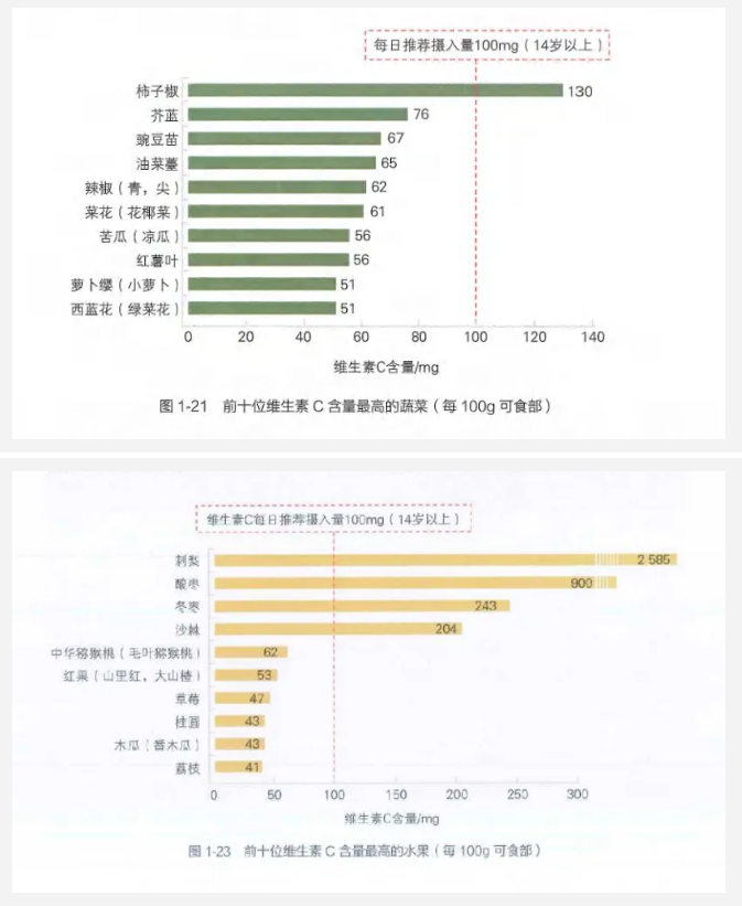 从我国的调查数据来看,中国65岁及以上居民平均每天维生素C的摄入量是71.8毫克,中位水平为59.5毫克/天;18~35岁成年人平均每天的维生素C摄入量是56.41毫克/天,而人体的健康推荐量是100毫克/天。