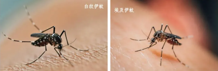 登革热和基孔肯雅热的传播途径相似,都是由白纹伊蚊和埃及伊蚊传播。伊蚊白天叮咬人,尤其活跃于日出前后1—2小时和日落前2—3小时。它们的幼虫孳生于小型积水容器中,瓶罐、废旧轮胎、花盆等都可能成为它们的“温床”。