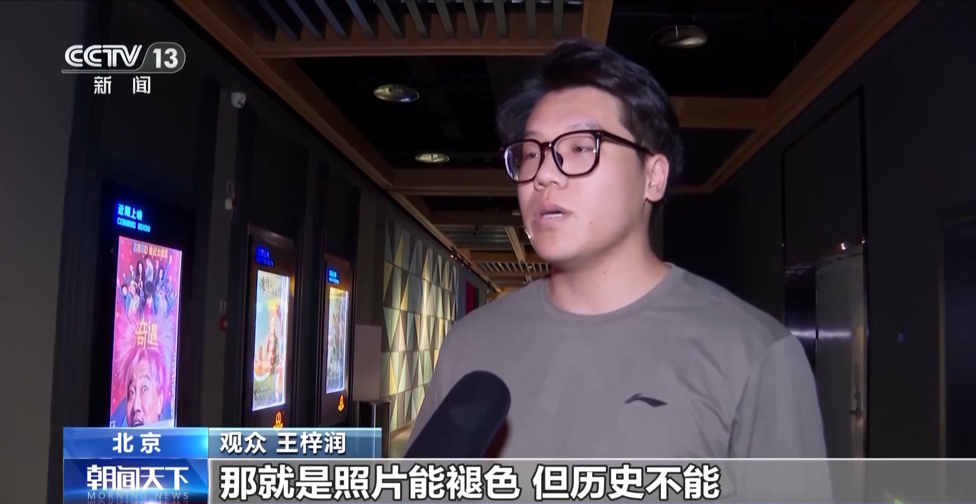观众 王梓润:电影中有一句话让我印象深刻,那就是照片能褪色但历史不能。看了这部电影,尤其是当电影结束灯光亮起的那一刻,我看到了现在祖国的繁荣昌盛。我希望像我一样的年轻人能够铭记这段历史,振兴中华。