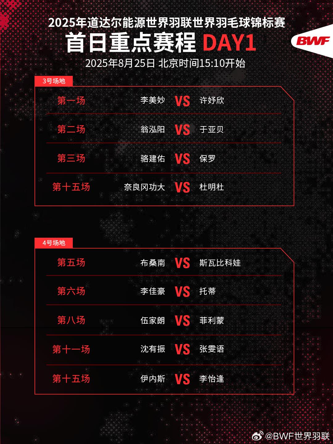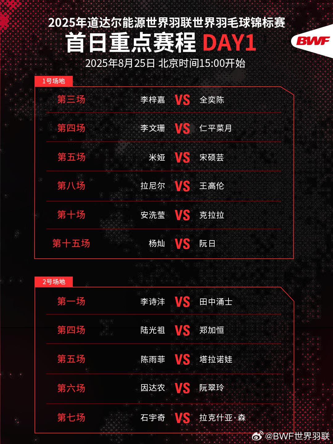 2025年羽毛球世锦赛今日开赛 一起为国羽加油