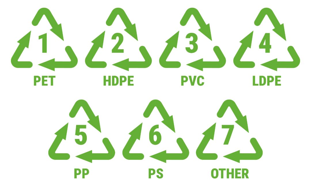 塑料制品上有三角箭头标志,三角中的塑料从1—7不等,代表的是它们原料树脂的规格。不同等级的塑料制品,有着不同的特性和应用场景。