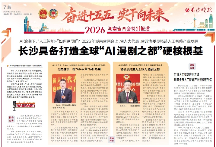 实施“人工智能+”行动,是生产力跃迁的重大革命,是事关国家兴旺的重大战略,也是湖南乘势而上的重大赛道。3日,长沙晚报两会“新闻会客厅”邀请正在参加省两会的省人大代表、省政协委员,围绕当下火热的人工智能产业谈思路、献良策。