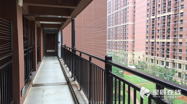 (开发商表示,出于防盗的考虑,已对个别楼层的连廊加装了防护网。)
