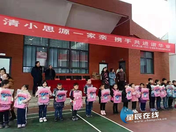 (清水塘小学向思源实验学校的孩子捐赠书包等学习用品。均为通讯员供图)