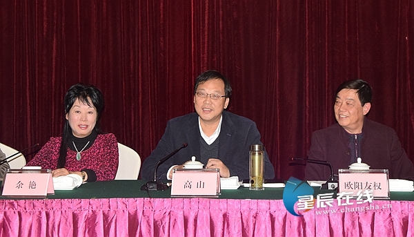 (长沙市委常委、宣传部部长高山(中)指出,长沙将以强烈的文化自信、文化责任、文化担当,发挥独有资源优势,提供优质高效服务,不断推动网络文学这一智慧GDP做大做强。)
