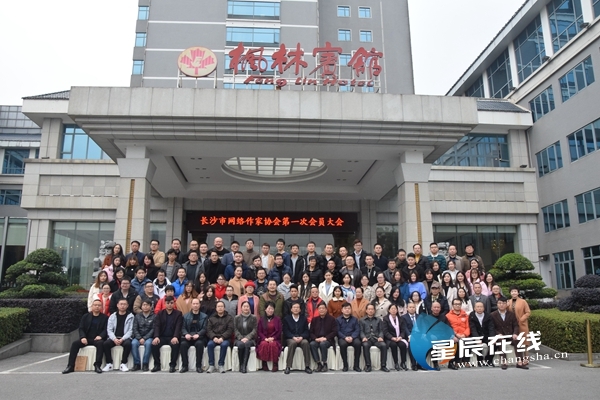 (长沙市网络作家协会会员代表们合影留念。图片均由星辰全媒体记者 刘佳/摄)