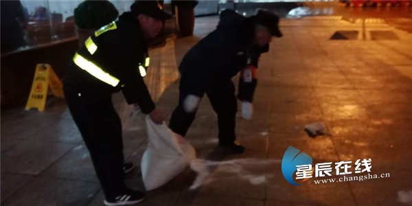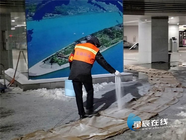 (12月29日晚上21点开始,兴发物业对西广场旅客通行区撒放工业盐。)