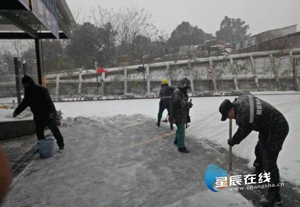 桐林坳社区对望城大道、黄金西路、雷高路、马桥河路沿线撒盐,确保交通顺畅。