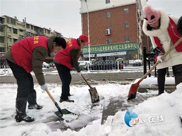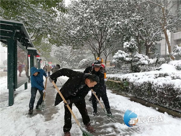 (天心区青园街道正在铲雪。 图片均由通讯员提供)