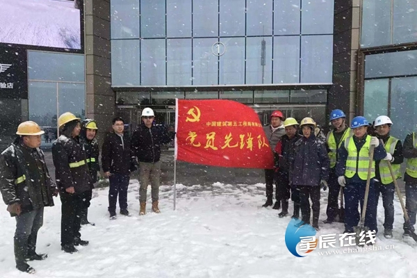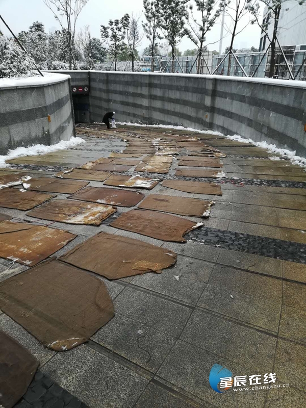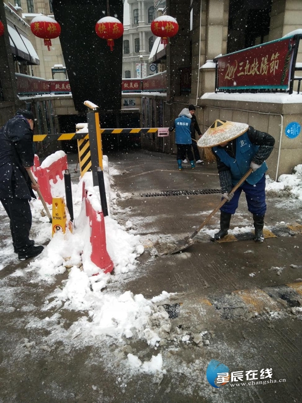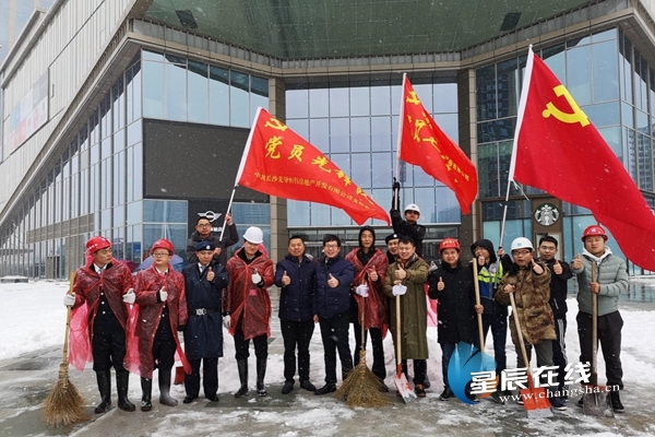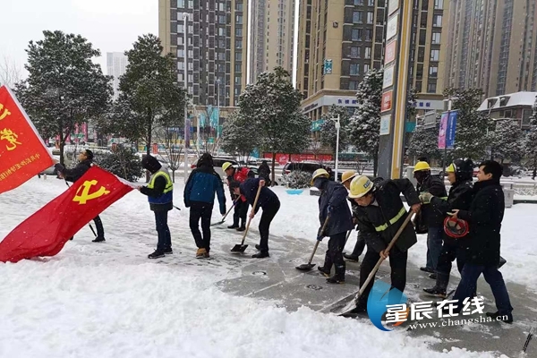 在湘江财富金融中心 ,长沙恒诚业房地产开发公司、恒汇商管公司、先导物业公司、中建五局最先响应倡议,迅速组织热血青年约80余人,“全副武装”上阵,对凯德购物中心南、北、西面开展了铲冰除雪大作战。不到1小时,凯德购物中心周边积雪路段、出入要道等都恢复了通行,“我们工人阶级有力量!”队伍里的小伙儿打趣道。