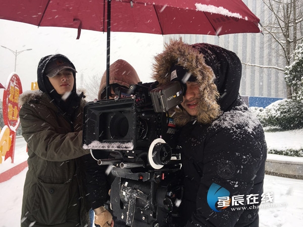 (拍摄前期,剧组人员克服了大雪、工期紧张等困难。使得《星辰之恋》如期与大家见面。朱锦 供图。)