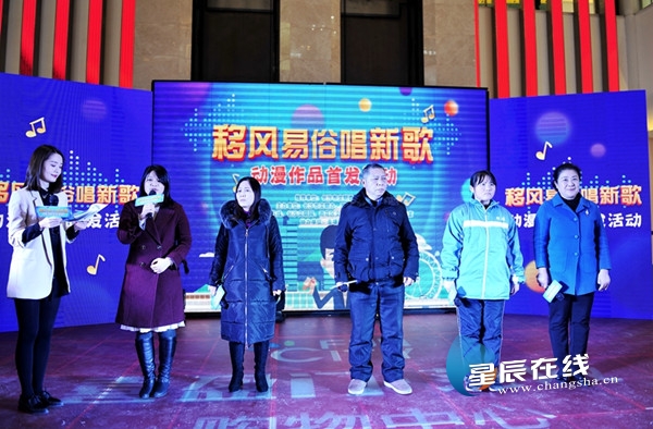 星辰在线1月18日讯(星辰全媒体记者 陈宇 龙莉 陈诚)“新长沙,唱新歌,文明创建涌春波。移风易俗除旧习,破旧立新结硕果。”1月17日下午,长沙市“移风易俗唱新歌”动漫作品首发活动在雨花区喜盈门范城举行。从即日起,全市将常态展播《移风易俗唱新歌》30秒公益广告精编版,用动漫形式引领文明新风尚的热潮。