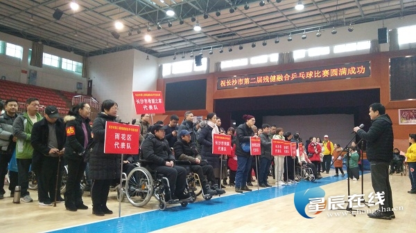 星辰在线1月18日讯(通讯员 李梅 星辰全媒体记者 张维)1月18日,“促进残健融合 共享幸福生活”长沙市第二届残健融合乒乓球赛在长沙县松雅湖中学体育馆隆重开幕,本次活动由长沙市残联和长沙市体育局主办,来自各区县(市)的残疾人运动员、残疾人工作者及健全人乒乓球爱好者等近200人参加。