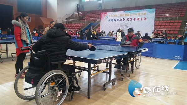 长沙市第二届残健融合乒乓球赛开幕 看运动员飒爽英姿