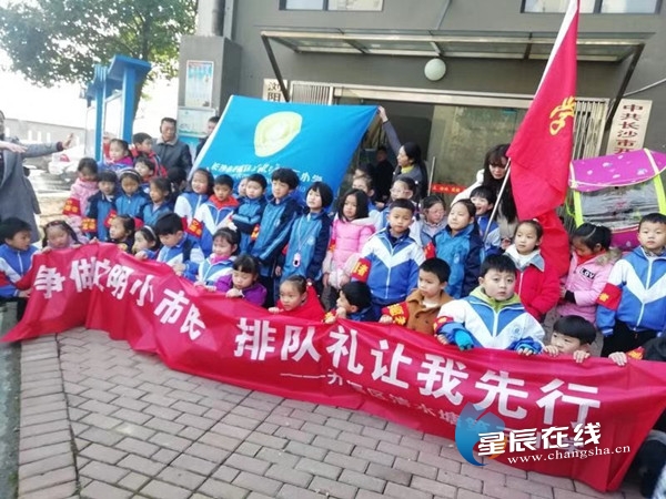 排队礼让我先行 长沙清水塘第三小学举行寒假实践活动
