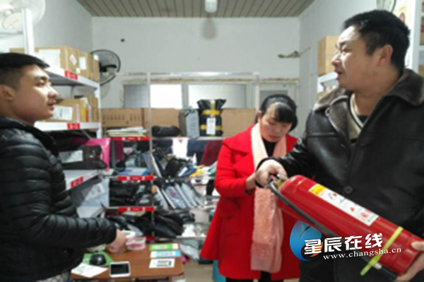 (社区网格长和网格员对店面进行安全检查。图片由通讯员提供)