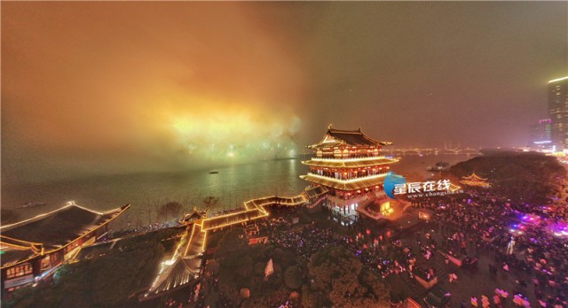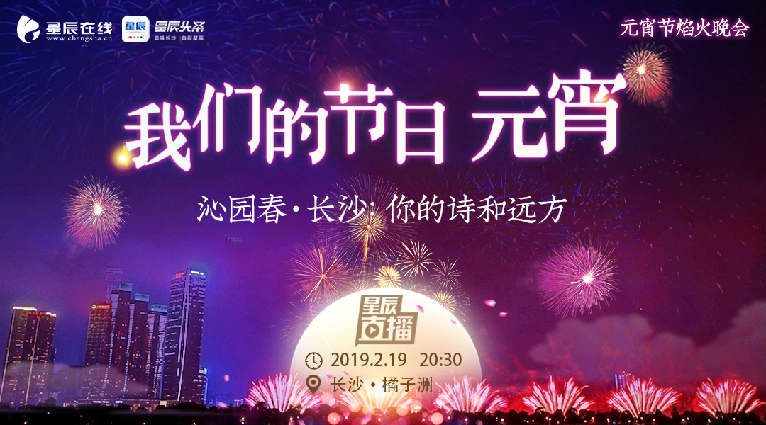 (“我们的节日 元宵——沁园春·长沙:你的诗和远方”焰火晚会现场。)